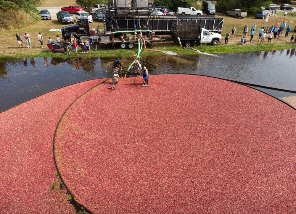 When all the berries have floated to the surface, they put a barrier in the water around the entire bog and gradually pull the barrier closer.